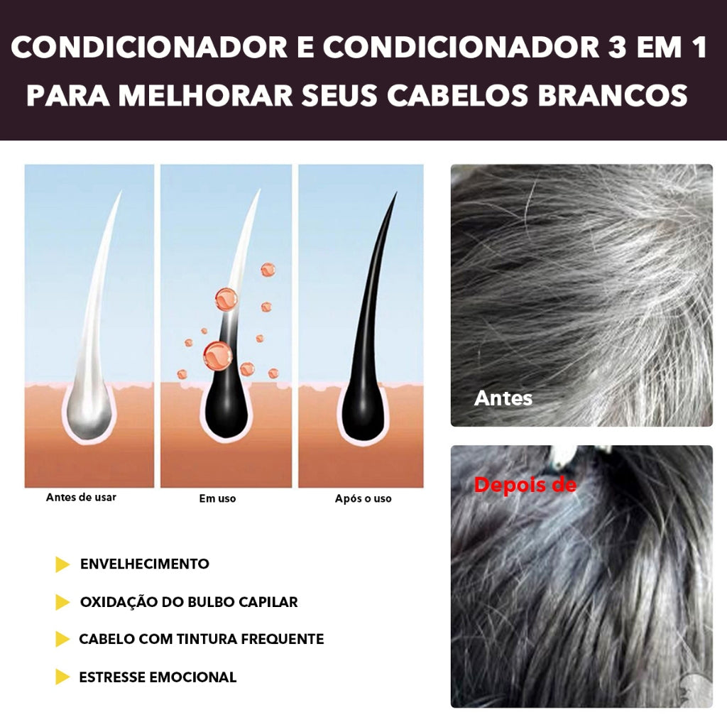 O Shampoo Corante de Cabelo 3 em 1 foi desenvolvido com extratos naturais de ervas para escurecer os fios brancos, fortalecer as raízes e restaurar a cor natural do cabelo, promovendo ao mesmo tempo nutrição intensa e crescimento saudável.