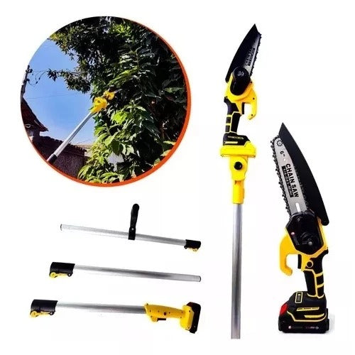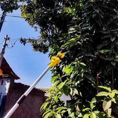 O cabo extensor de até 3 metros, dividido em 4 partes, permite alcançar galhos altos e locais de difícil acesso com muito mais segurança e praticidade, trazendo conforto e eficiência durante cortes e podas em qualquer ambiente. Sua corrente com placa guia de alta qualidade, submetida a têmpera profunda, oferece maior resistência ao desgaste, garantindo durabilidade, desempenho constante e baixo consumo de energia.